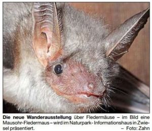Zwiesel. Im Rahmen des Naturpark-Bildungsprogramms 2017 findet im Naturpark- Informationshaus an der B11 (Abfahrt Zwiesel-Süd) die Präsentation einer neuen Naturpark-Wanderausstellung zu Fledermäusen statt.
