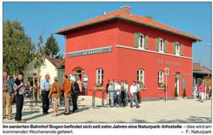 Bogen. Im Jahr 2006 haben der Naturpark Bayerischer Wald und die Stadt Bogen eine Naturpark-Infostelle im Obergeschoss des Bahnhofsgebäudes errichtet. Diese ist Naturpark-Anlaufstelle für den Landkreis Straubing-Bogen. Nachdem die Stadt Bogen den renovierungsbedürftigen Bahnhof und das Umfeld mit verschiedenen Förderprogrammen saniert hatte, entstand im 1. Obergeschoss eine Naturpark-Infostelle mit Veranstaltungsmöglichkeit. Neben dem Bahnhofsbistro, einer WC-Anlage und einer Fahrradabstellmöglichkeit wurde das ganze Umfeld mit Busbahnhof neu gestaltet. Alle Interessierten sind an diesem Wochenende 17. und 18. September herzlich eingeladen das zehnjährige Bestehen der Infostelle mitzufeiern.