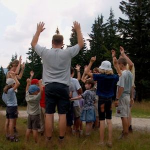 Das „Sich-Einlassen“ auf die Natur konnte jeder Wanderer mit Hilfe eines auf die Nase gelegten Taschenspiegels, der Groß und Klein selbst während des Gehens „neue Perspektiven“ eröffnete, ausprobieren. Des Weiteren wurde über das Spiel „Luchs und Reh“ den Kindern die Lebensweise des lautlosen heimischen Waldjägers nähergebracht. Auf dem Rückweg konnten die neuen Eindrücke und Einblicke in den spannenden Lebensraum Wald besprochen, diskutiert und verarbeitet werden.