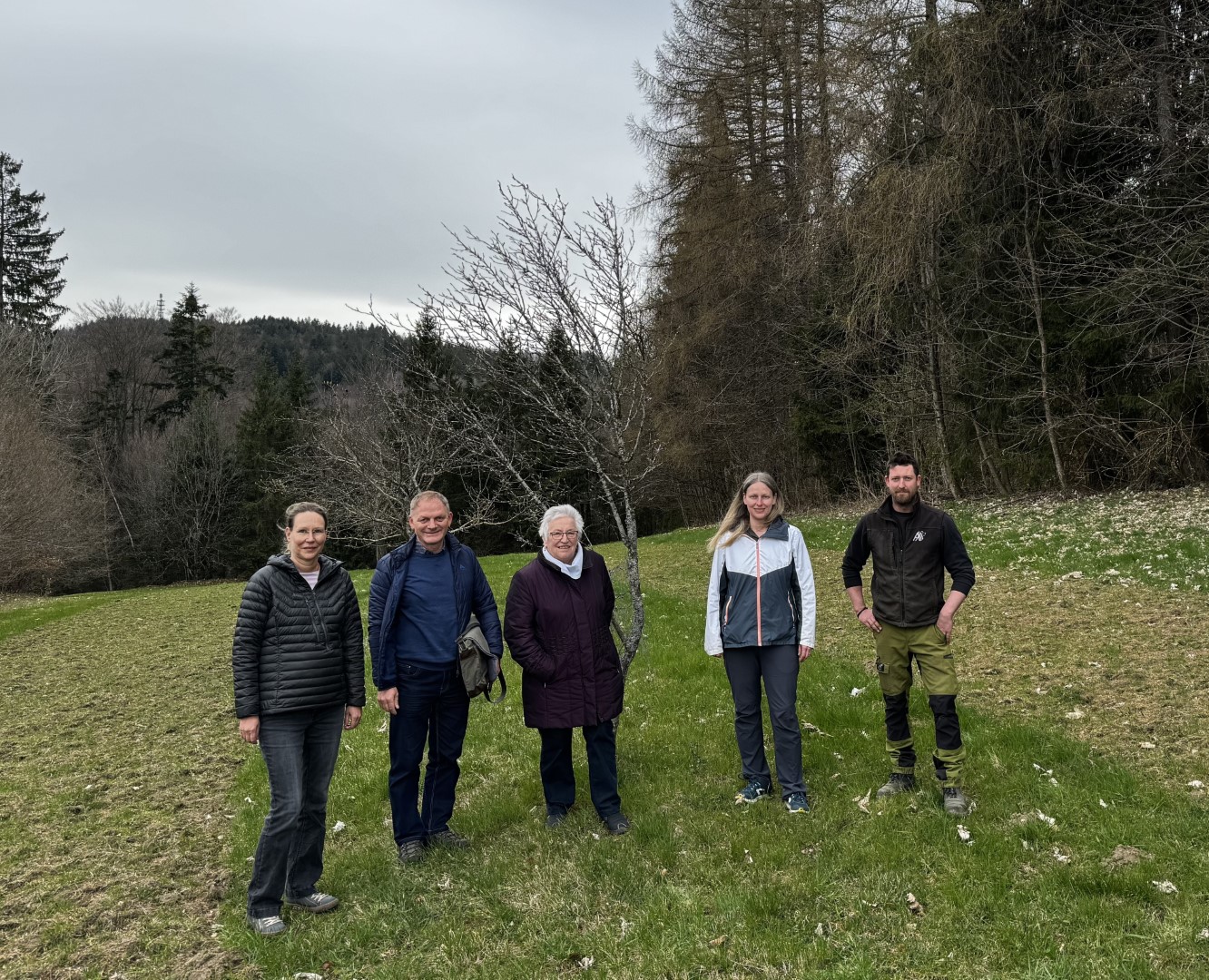 Neben der Wiederaufnahme der Pflege der Wiese und Gehölze konnte eine Artanreicherung über das Projekt Blühender Naturpark im letzten Herbst erfolgen. Für die Tattenberger Wiese wurde ein passendes Gegenstück gesucht, die bereits eine Vielzahl von Pflanzenarten aufweist, sich in der Nähe befindet und ähnliche Standortsbedingungen aufweist. „Im Sommer 2023 wurde eine artenreiche Glatthaferwiese am Ruselabsatz ausgebürstet. D. h. vorm 1. Schnitt wurden Samen mit einem handgeführten Gerät von der Spenderfläche gewonnen. In Tattenberg wurde nach der Mahd im September die Grasnarbe des Bodens auf zwei Streifen geöffnet, per Hand eingesät und dann angewalzt.“ erklärt Andrea Rinke, Koordinatorin für das Projekt Blühender Naturpark. „Besonderen Dank geht an den Bewirtschafter Herr Graf und dem Eigentümer Herr Lallinger, die der Samenernte zustimmten.“ Nur mit der freiwilligen Teilnahme kann das Projekt Blühender Naturpark umgesetzt werden. So können gezielt verschwundene Arten auf brache Wiesen eingebracht, geschwächte Populationen gestärkt und Pflanzgesellschaften wiederhergestellt werden. „Wenn in unmittelbarer Nähe kaum Arten vorhanden sind, müssen wir diese mit unserer Hilfe herbringen“ merkt Andrea Rinke an und verwies auf die bearbeitete Fläche. Jetzt Ende März zeigen sich die ersten Keimlinge, wie sie ihre noch wachsenden Sprossen gen Himmel streckten.
